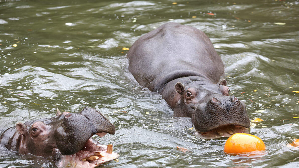The Hippos at the Cheyenne Mountain Zoo Love Pumpkins!